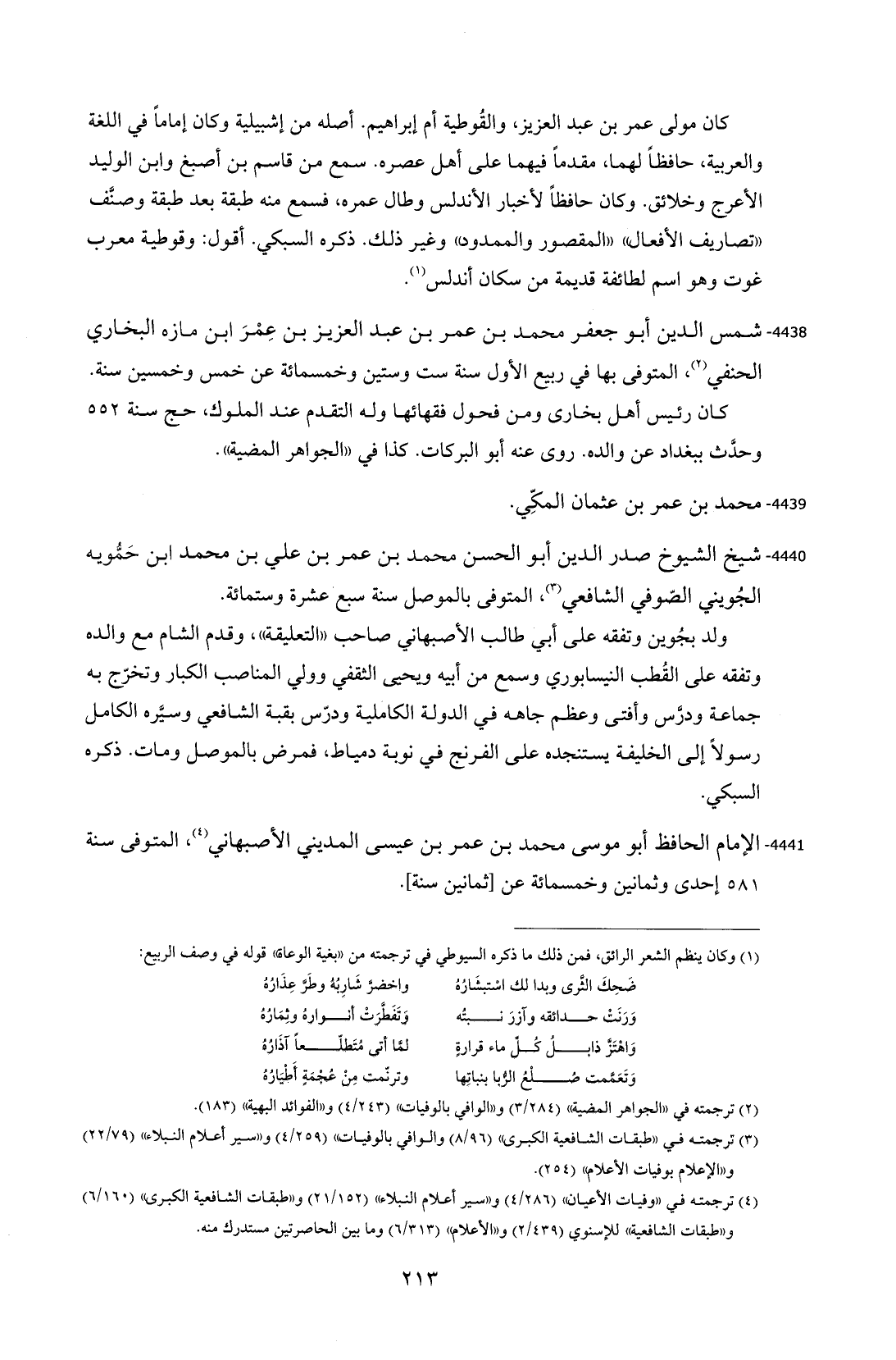 4441 - الإمام الحافظ أبو موسى محمد بن عمر بن عيسى المديني الأصبهاني (¬4)، المتوفى سنة 581 إحدى وثمانين وخمسمائة عن [ثمانين سنة].