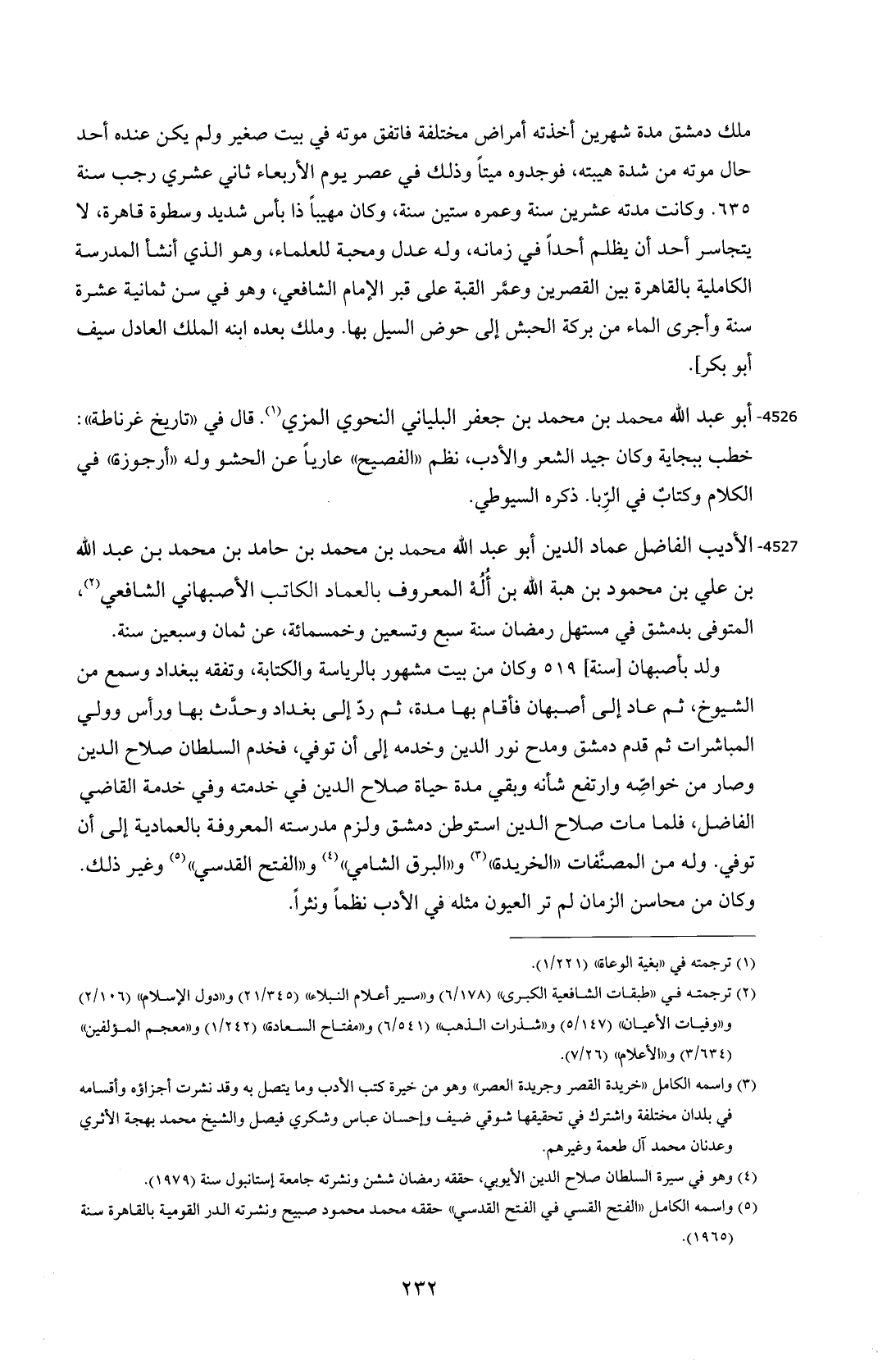 (¬5) واسمه الكامل "الفتح القسي في الفتح القدسي" حققه محمد محمود صبيح ونشرته الدر القومية بالقاهرة سنة (1965)