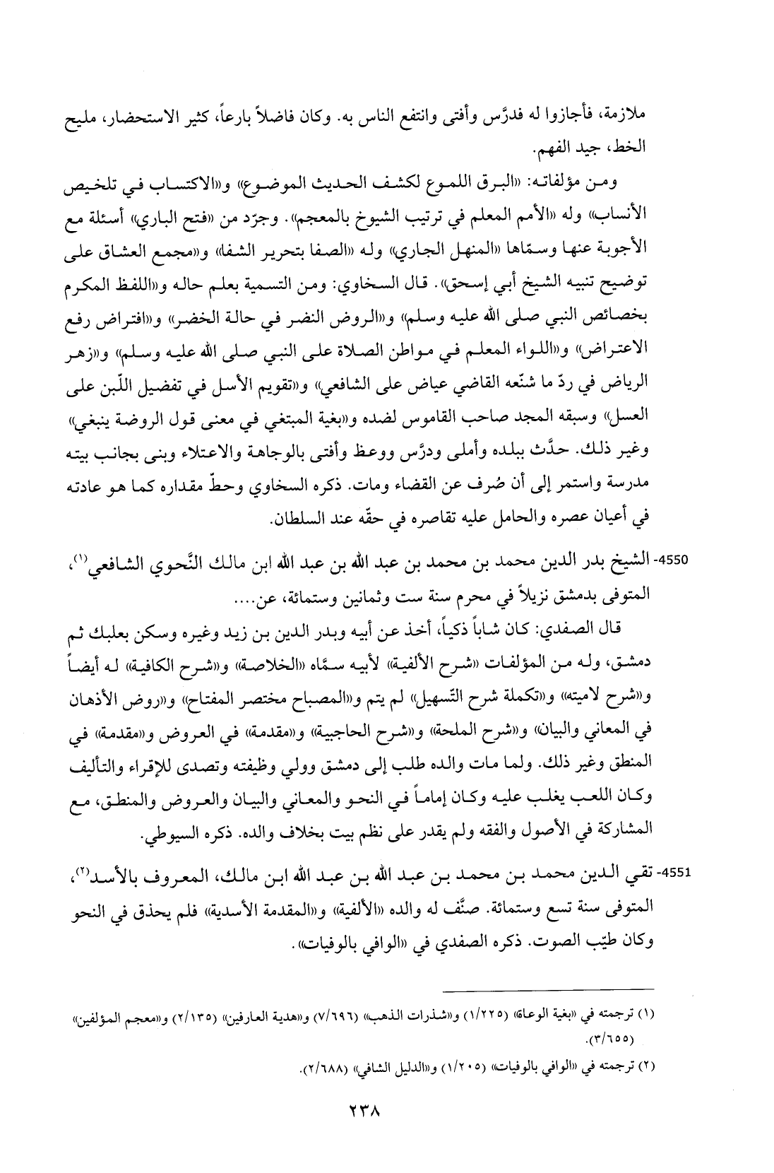 4550 - الشيخ بدر الدين محمد بن محمد بن عبد الله بن عبد الله ابن مالك النَّحوي الشافعي (¬1)، المتوفى بدمشق نزيلًا في محرم سنة ست وثمانين وستمائة، عن ....