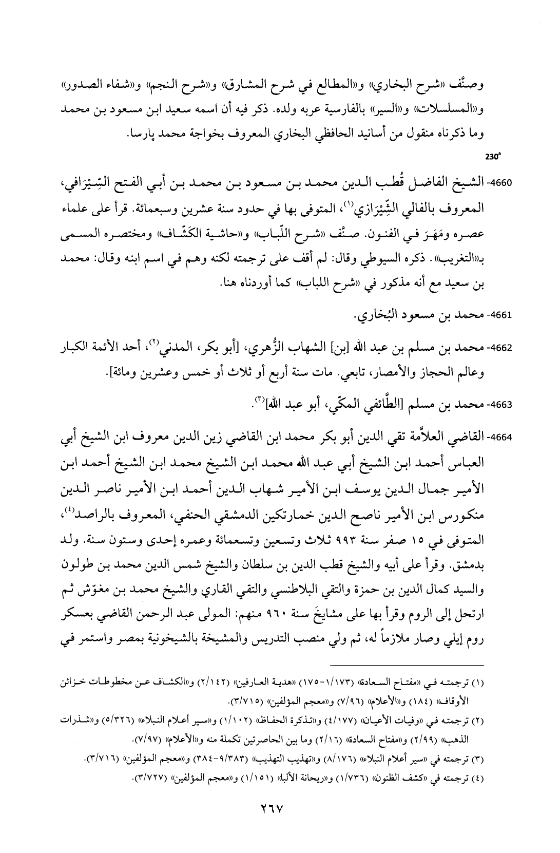 4660 - الشيخ الفاضل قُطب الدين محمد بن مسعود بن محمد بن أبي الفتح السِّيْرَافي، المعروف بالفالي الشِّيْرَازي (¬1)، المتوفى بها في حدود سنة عشرين وسبعمائة. قرأ على علماء عصره ومَهَرَ في الفنون. صنَّف "شرح اللّباب" و "حاشية الكَشّاف" ومختصره المسمى بـ"التغريب". ذكره السيوطي وقال: لم أقف على ترجمته لكنه وهم في اسم ابنه وقال: محمد بن سعيد مع أنه مذكور في "شرح اللباب" كما أوردناه هنا.