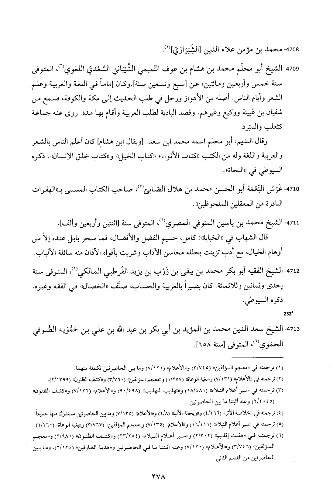 4713 - الشيخ سعد الدين محمد بن المؤيد بن أبي بكر بن عبد الله بن علي بن حَمُّوَيه الصُّوفي الحمَوي (¬6)، المتوفى [سنة 658].