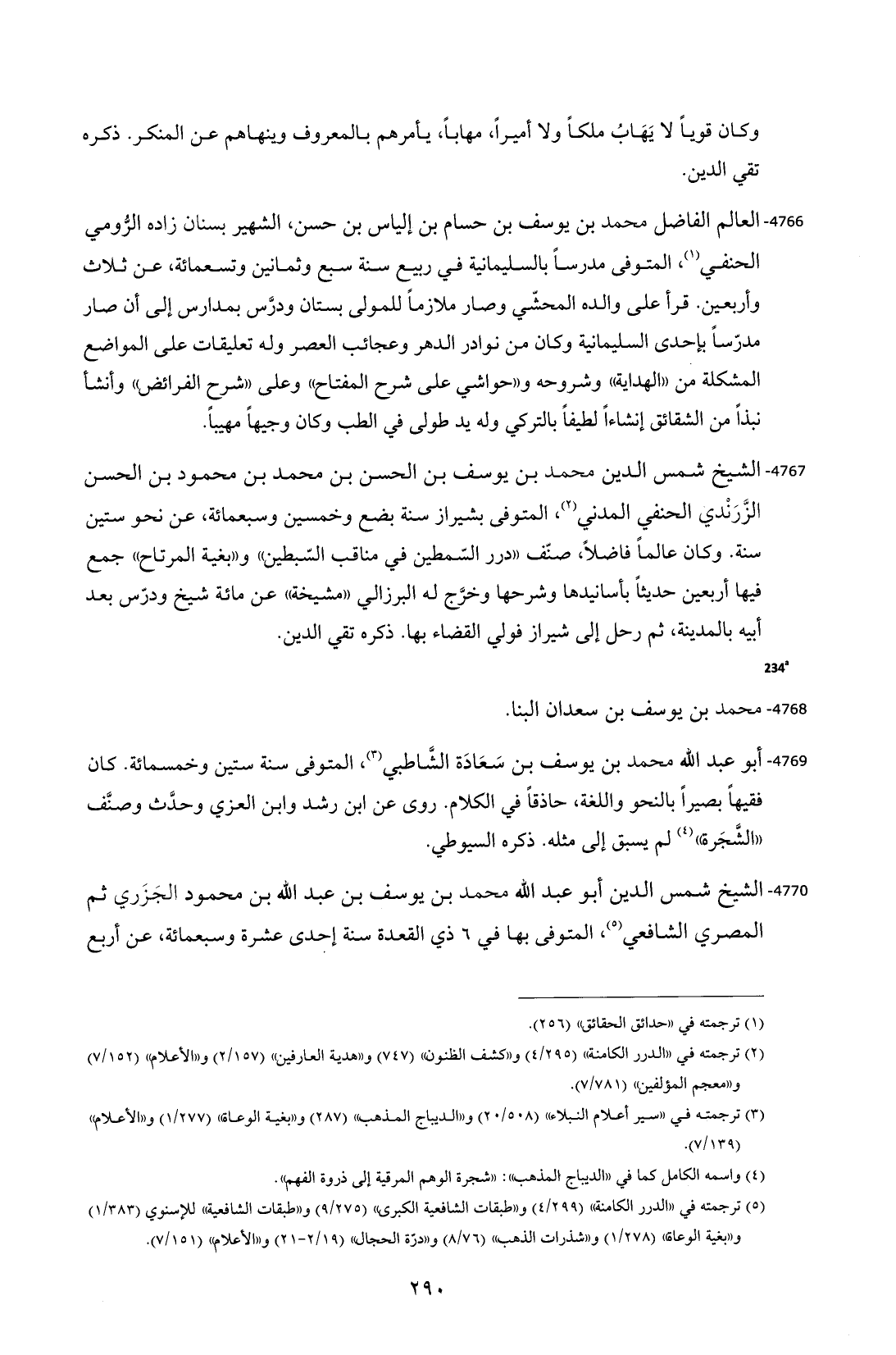 4766 - العالم الفاضل محمد بن يوسف بن حسام بن إلياس بن حسن، الشهير بسنان زاده الرُّومي الحنفي (¬1)، المتوفى مدرساً بالسليمانية في ربيع سنة سبع وثمانين وتسعمائة، عن ثلاث وأربعين. قرأ على والده المحشّي وصار ملازماً للمولى بستان ودرَّس بمدارس إلى أن صار مدرّساً بإحدى السليمانية وكان من نوادر الدهر وعجائب العصر وله تعليقات على المواضع المشكلة من "الهداية" وشروحه و"حواشي على شرح المفتاح" وعلى "شرح الفرائض" وأنشأ نبذاً من الشقائق إنشاءاً لطيفاً بالتركي وله يد طولى في الطب وكان وجيهاً مهيباً.