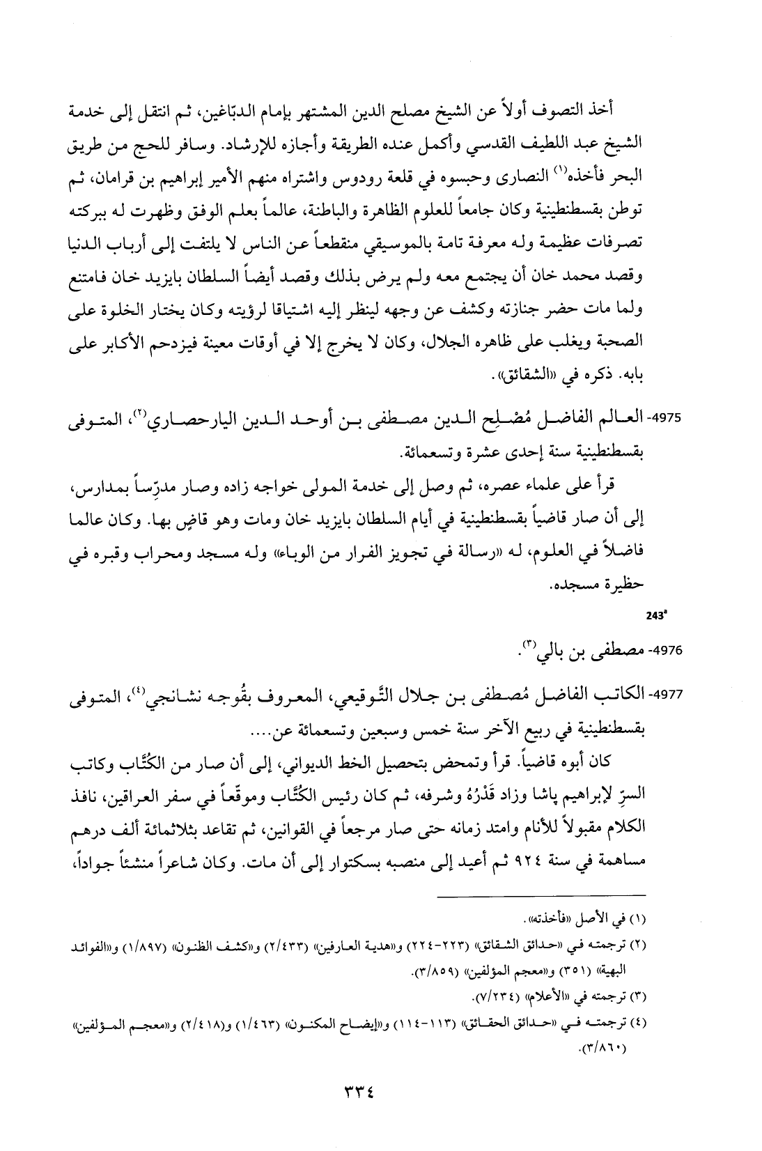 (¬2) ترجمته في "حدائق الشقائق" (223 - 224) و"هدية العارفين" (2/ 433) و"كشف الظنون" (1/ 897) و"الفوائد البهية" (351) و"معجم المؤلفين" (3/ 859).