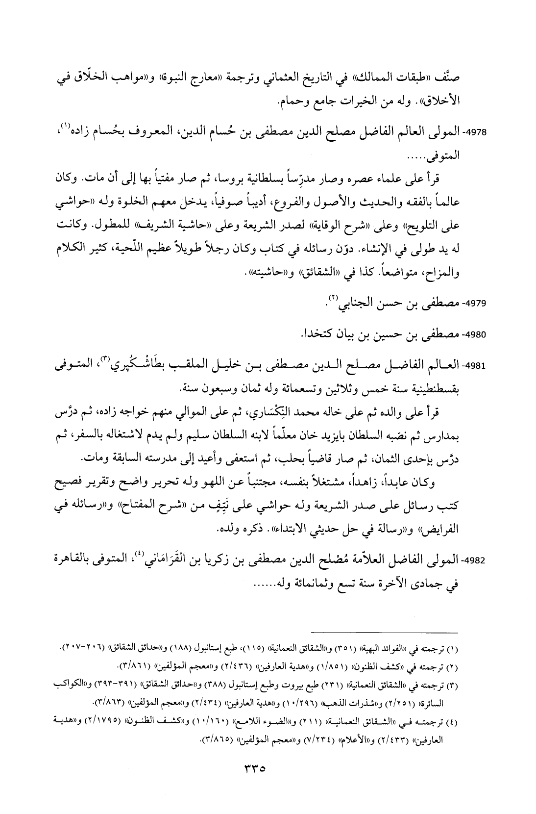 4981 - العالم الفاضل مصلح الدين مصطفى بن خليل الملقب بطَاشْكُيري (¬3)، المتوفى بقسطنطينية سنة خمس وثلاثين وتسعمائة وله ثمان وسبعون سنة.