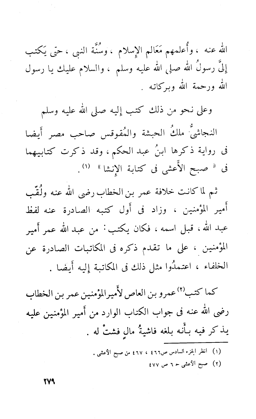 ثمَّ لما كَانَت خلَافَة عمر بن الْخطاب رَضِي الله عَنهُ ولقب أَمِير الْمُؤمنِينَ وَزَاد فِي أول كتبه الصادرة عَنهُ لفظ عبد الله قبل اسْمه فَكَانَ يكْتب من عبد الله عمر أَمِير الْمُؤمنِينَ على مَا تقدم ذكره فِي المكاتبات الصادرة عَن الْخُلَفَاء اعتمدوا مثل ذَلِك فِي الْمُكَاتبَة إِلَيْهِ أَيْضا