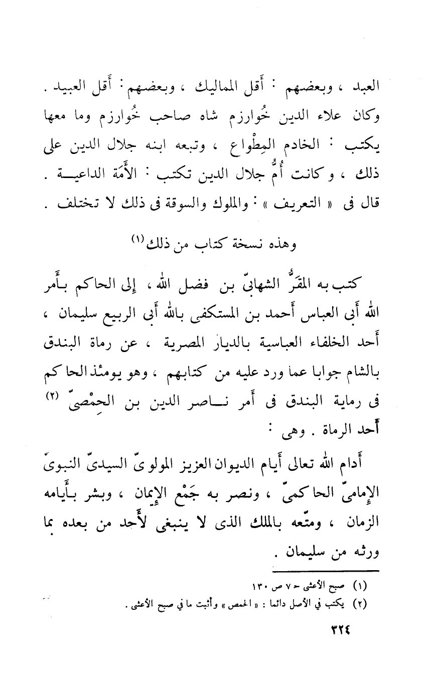 العَبْد وَبَعْضهمْ أقل المماليك وَبَعْضهمْ أقل العبيد وَكَانَ عَلَاء الدّين خوارزم شاه صَاحب خوارزم وَمَا مَعهَا يكْتب الْخَادِم المطواع وَتَبعهُ ابْنه جلال الدّين على ذَلِك وَكَانَت أم جلال الدّين تكْتب الْأمة الداعية قَالَ فِي التَّعْرِيف والملوك والسوقة فِي ذَلِك لَا تخْتَلف