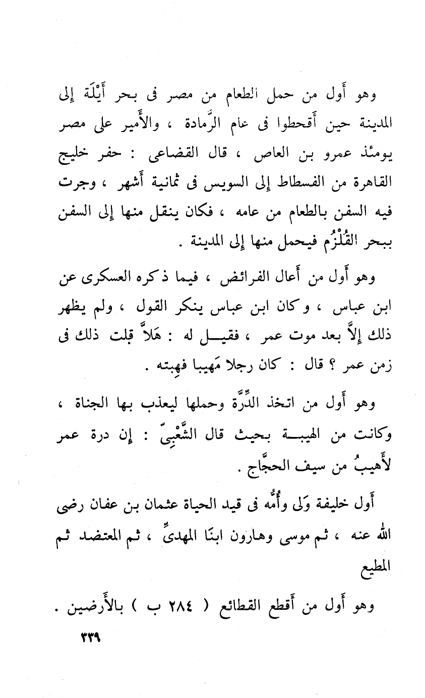 وَهُوَ أول من حمل الطَّعَام من مصر فِي بَحر أَيْلَة إِلَى الْمَدِينَة حِين أقحطوا فِي عَام الرَّمَادَة والأمير على مصر يَوْمئِذٍ عَمْرو بن الْعَاصِ قَالَ الْقُضَاعِي حفر خليج الْقَاهِرَة من الْفسْطَاط إِلَى السويس فِي ثَمَانِيَة أشهر وَجَرت فِيهِ السفن بِالطَّعَامِ من عَامه فَكَانَ ينْقل مِنْهَا إِلَى السفن ببحر القلزم فَيحمل مِنْهَا إِلَى الْمَدِينَة