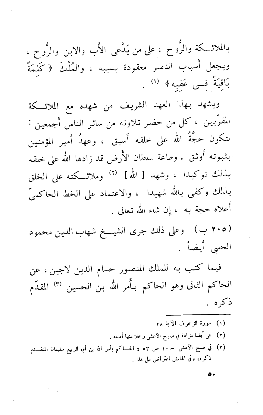 205 - ب وعَلى ذَلِك جرى الشَّيْخ شهَاب الدّين مَحْمُود الْحلَبِي أَيْضا
