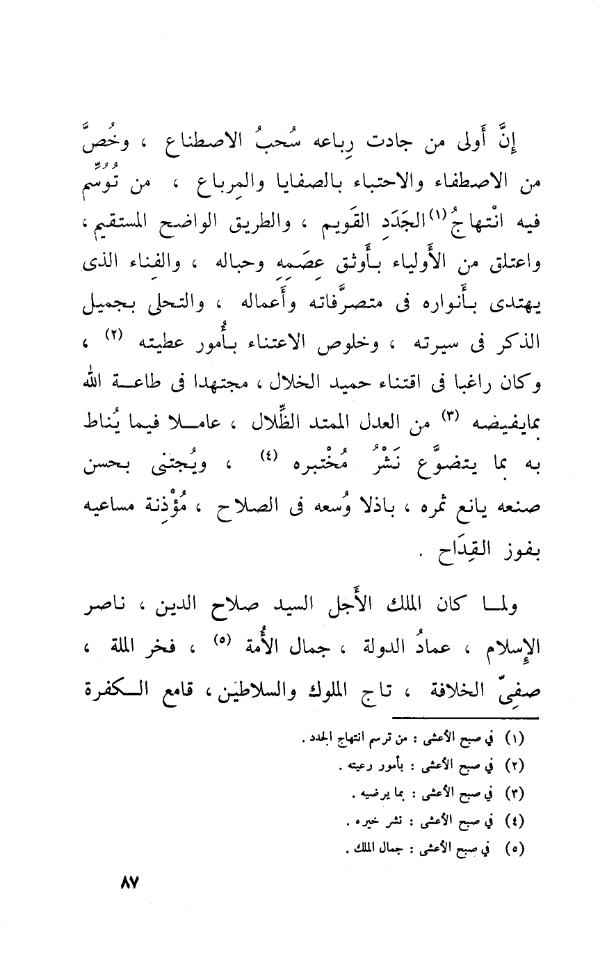 وَلما كَانَ الْملك الْأَجَل السَّيِّد صَلَاح الدّين نَاصِر الْإِسْلَام عماد الدولة جمال الْأمة فَخر الْملَّة صفي الْخلَافَة تَاج الْمُلُوك والسلاطين قامع الْكَفَرَة