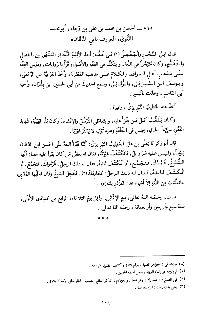 711 - الحسن بن محمد بن على بن رجاء، أبو محمد اللّغوىّ، المعروف بابن الدّهّان *