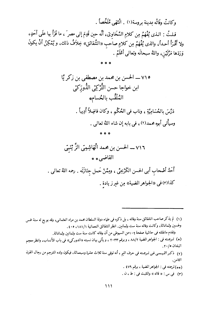 111 و كانت وفاته بمدينة بروسة 1. انتهى ملخّصا.