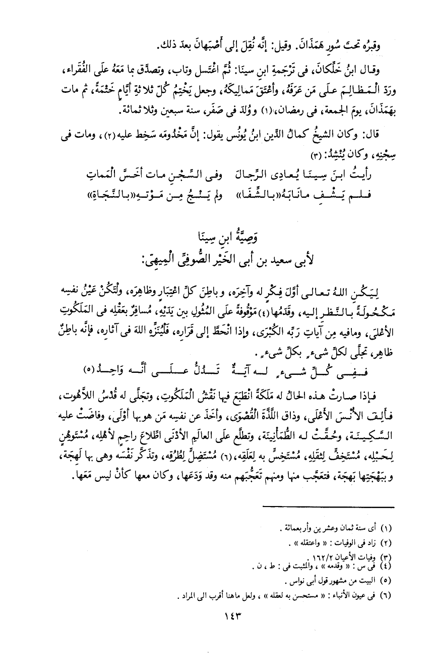 وصيّة ابن سينا لأبى سعيد بن أبى الخير الصّوفىّ الميهىّ: