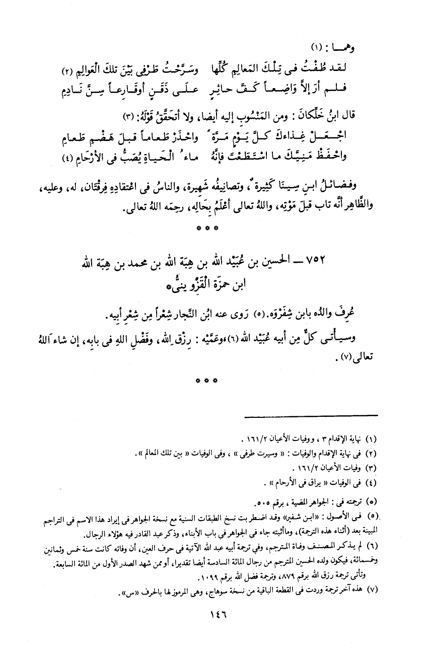 5) فى الأصول: «ابن شفير» و قد اضطربت نسخ الطبقات السنية مع نسخة الجواهر فى إيراد هذا الاسم فى التراجم المبينة بعد (أثناء هذه الترجمة)، و ما أثبته جاء فى الجواهر فى باب الأبناء، و ذكر عبد القادر فيه هؤلاء الرجال.