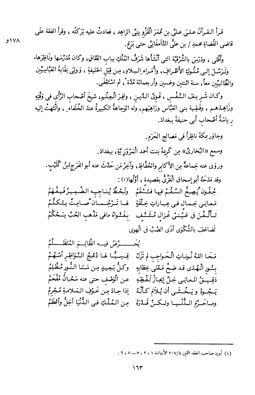163 قرأ القرآن على علىّ بن عمر القزوينىّ الزاهد، فعادت عليه بركته، و قرأ الفقه على قاضى القضاة محمد/بن علىّ الدّامغانىّ حتى برع.