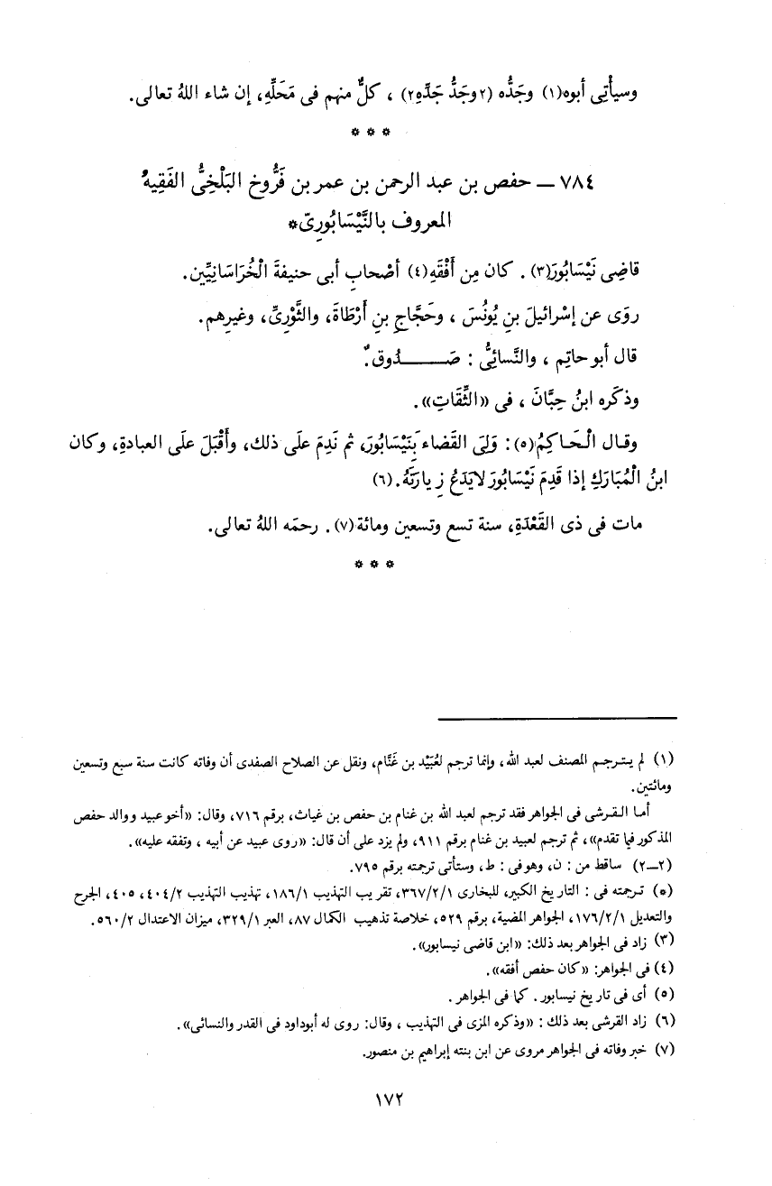 172 و سيأتى أبوه 1 و جدّه 2 و جدّ جدّه 2، كلّ منهم فى محلّه، إن شاء الله تعالى.