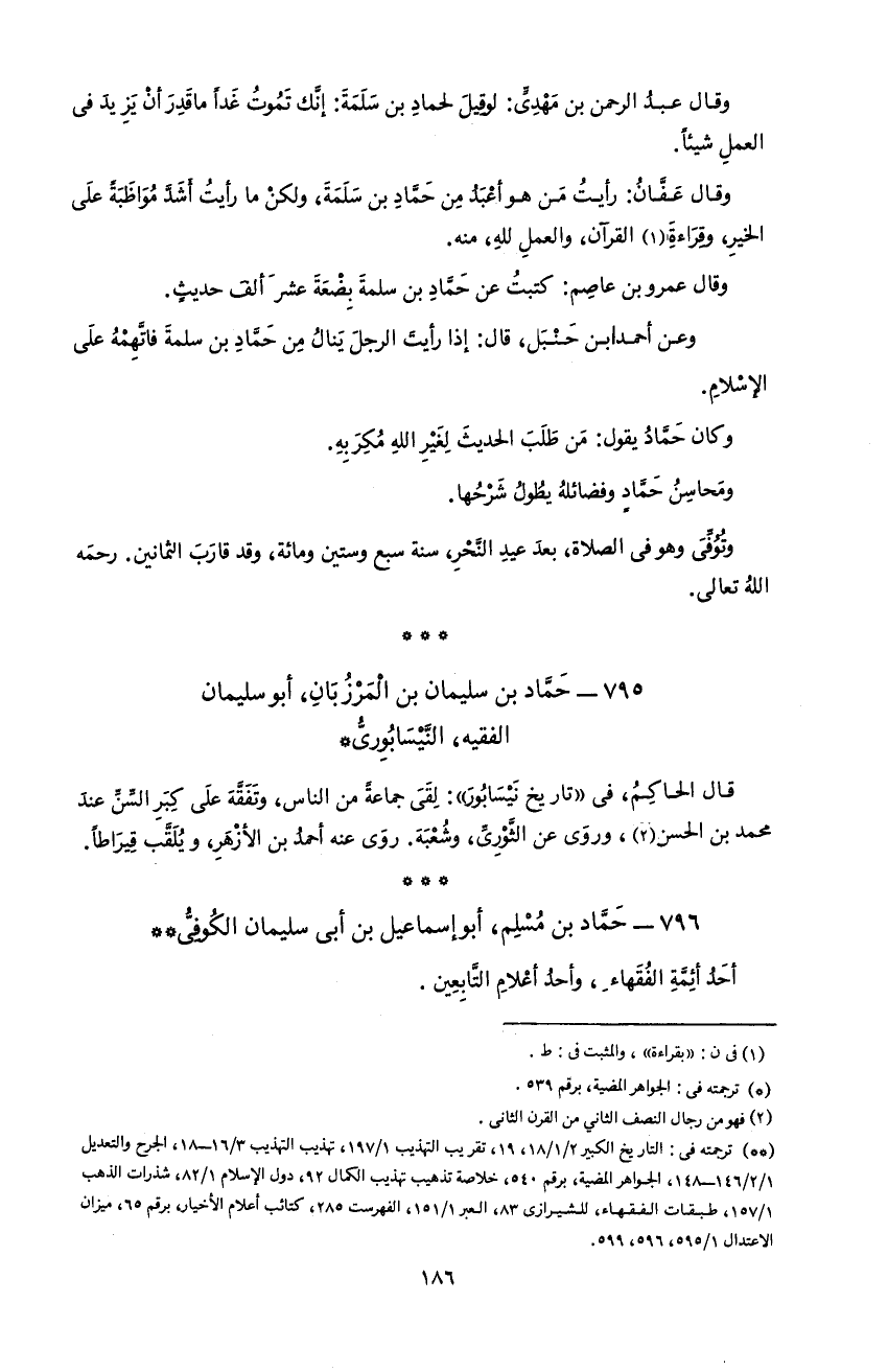 186 و قال عبد الرحمن بن مهدىّ: لوقيل لحماد بن سلمة: إنّك تموت غدا ما قدر أن يزيد فى العمل شيئا.