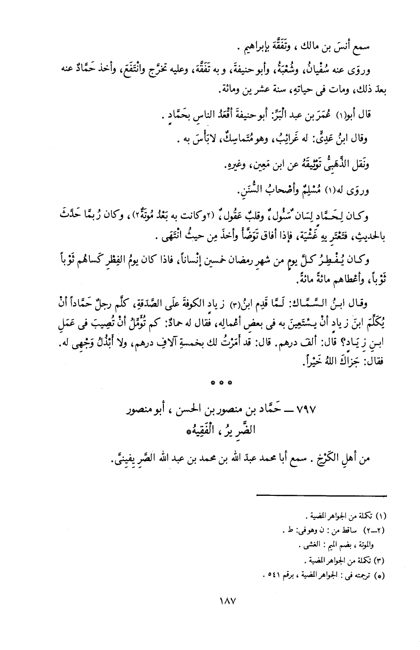 797 - حمّاد بن منصور بن الحسن، أبو منصور الضّرير، الفقيه *