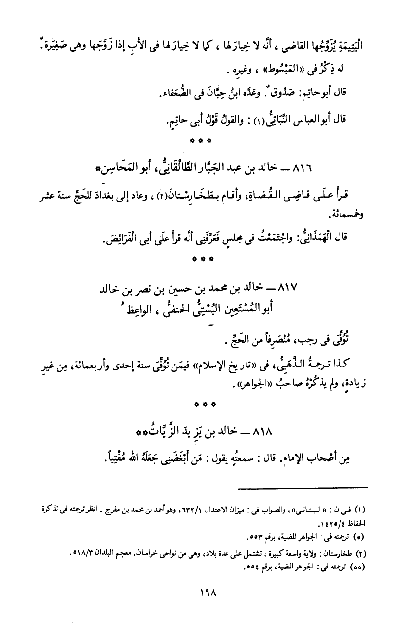 816 - خالد بن عبد الجبّار الطّالقانىّ، أبو المحاسن *