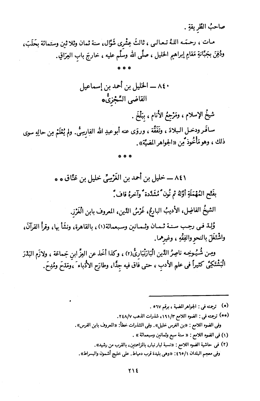 840 - الخليل بن أحمد بن إسماعيل القاضى السّجزىّ *