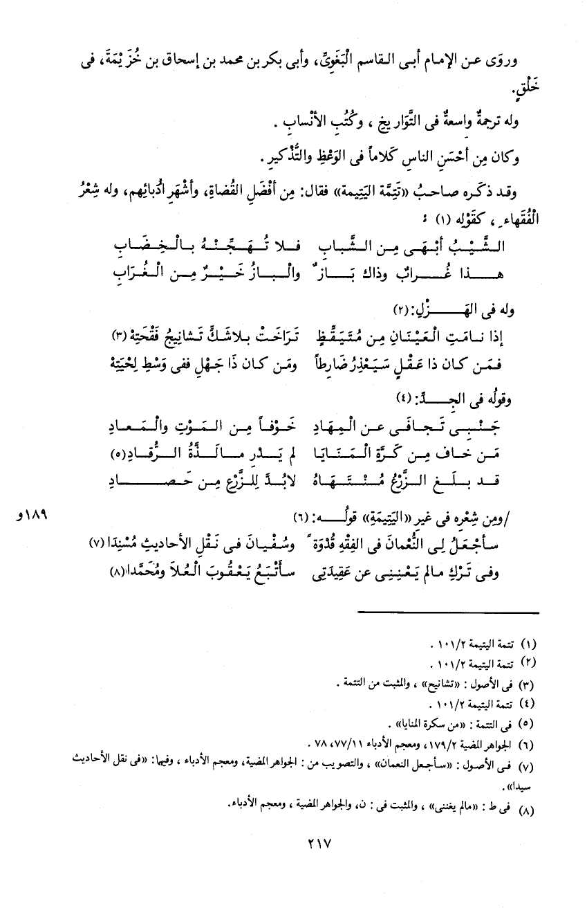 8) فى ط: «ما لم يغننى»، و المثبت فى: ن، و الجواهر المضية، و معجم الأدباء.
