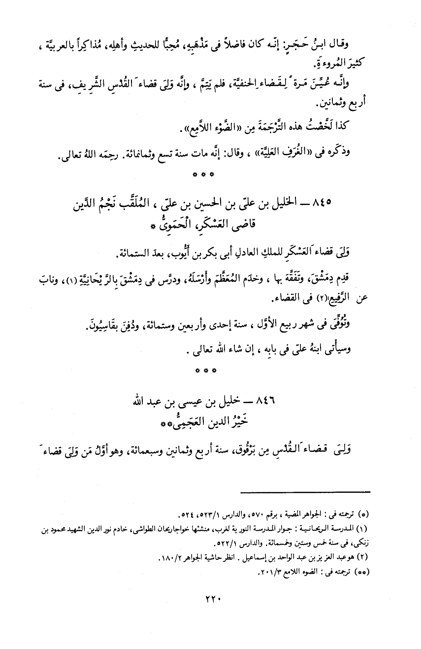 845 - الخليل بن علىّ بن الحسين بن علىّ، الملقّب نجم الدّين قاضى العسكر، الحموىّ *