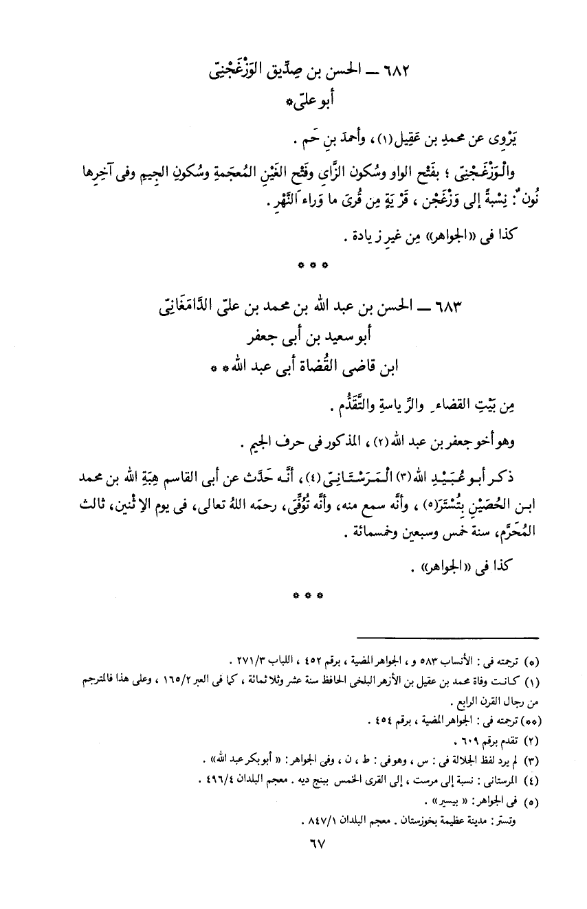 682 - الحسن بن صدّيق الوزغجنّى أبو علىّ *