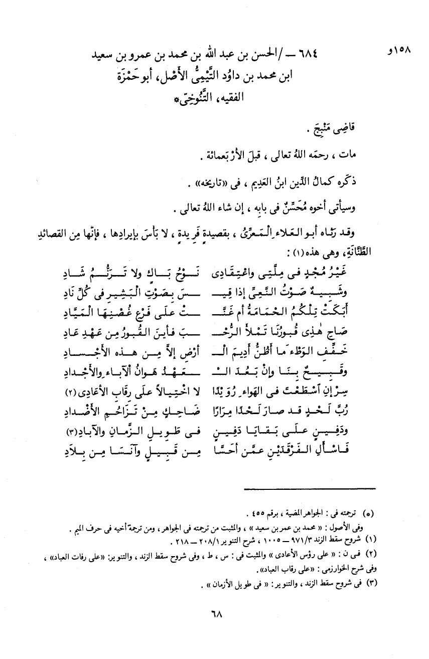 684 - /الحسن بن عبد اللّه بن محمد بن عمرو بن سعيد ابن محمد بن داود التّيمىّ الأصل، أبو حمزة الفقيه، التّنوخىّ *