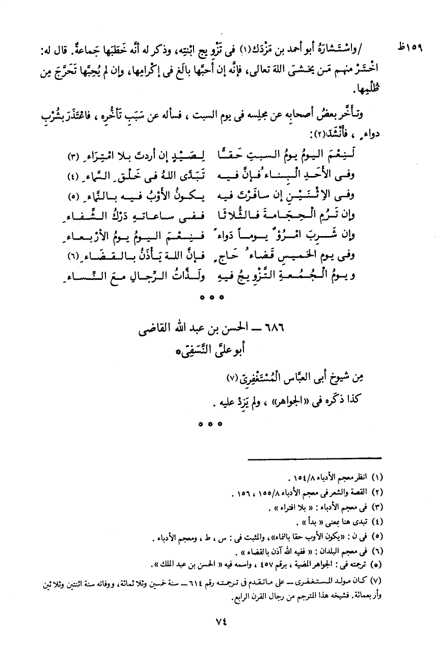 74 /و استشاره أبو أحمد بن مزدك 1 فى تزويج ابنته، و ذكر له أنّه خطبها جماعة. قال له: