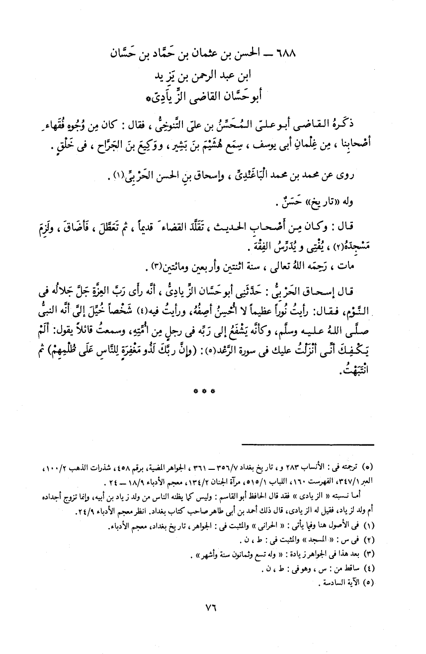 688 - الحسن بن عثمان بن حمّاد بن حسّان ابن عبد الرحمن بن يزيد أبو حسّان القاضى الزّيادىّ *