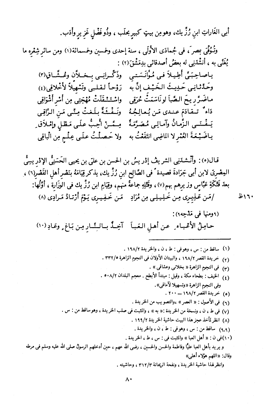 80 أبى الغارات ابن رزّيك، و هو من بيت كبير بحلب، و ذو فضل غزير و أدب.