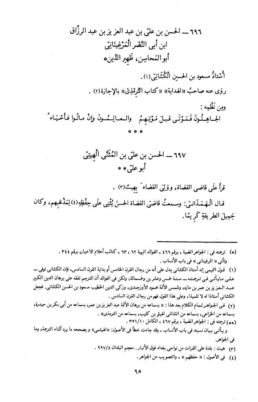 696 - الحسن بن علىّ بن عبد العزيز بن عبد الرزّاق ابن أبى النّصر المرغينانىّ أبو المحاسن، ظهير الدّين *