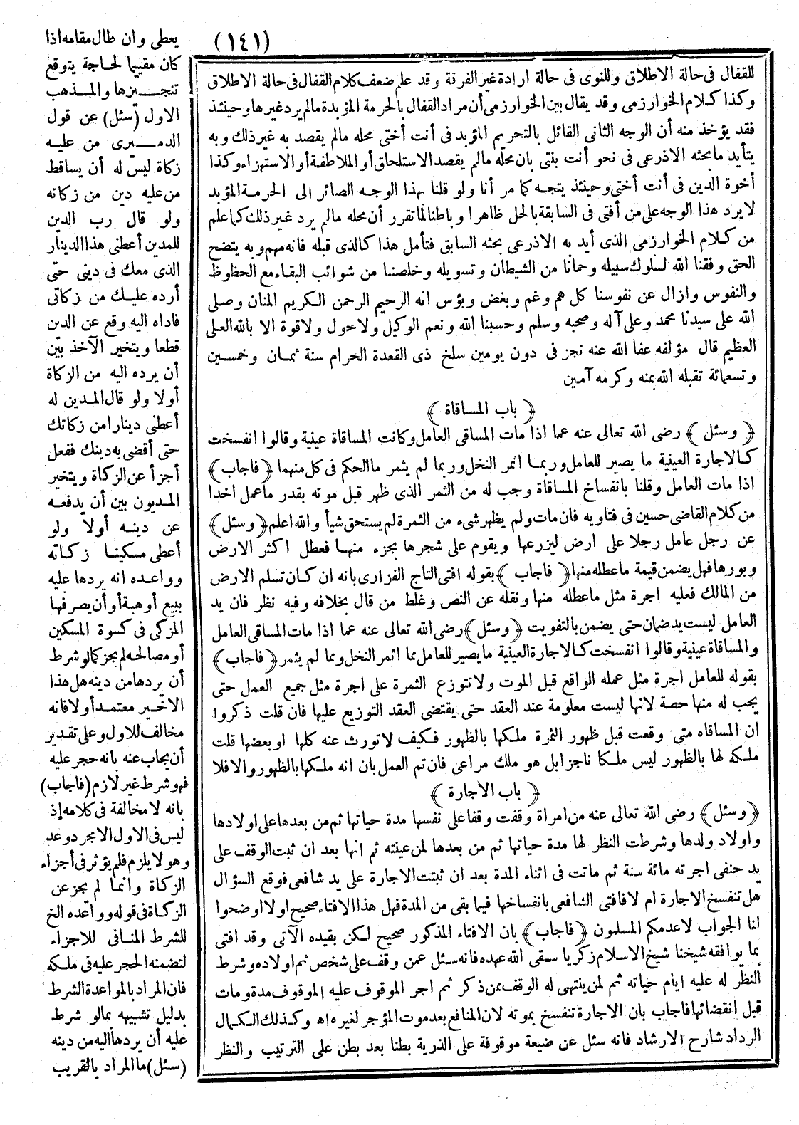 (وَسُئِلَ - رَضِيَ اللَّهُ تَعَالَى عَنْهُ -) عَمَّا إذَا مَاتَ الْمُسَاقِي الْعَامِلُ وَكَانَتْ الْمُسَاقَاةُ عَيْنِيَّةً وَقَالُوا انْفَسَخَتْ كَالْإِجَارَةِ الْعَيْنِيَّةِ مَا يَصِيرُ لِلْعَامِلِ وَرُبَّمَا أَثْمَرَ النَّخْلُ وَرُبَّمَا لَمْ يُثْمِرْ مَا الْحُكْمُ فِي كُلٍّ مِنْهُمَا؟