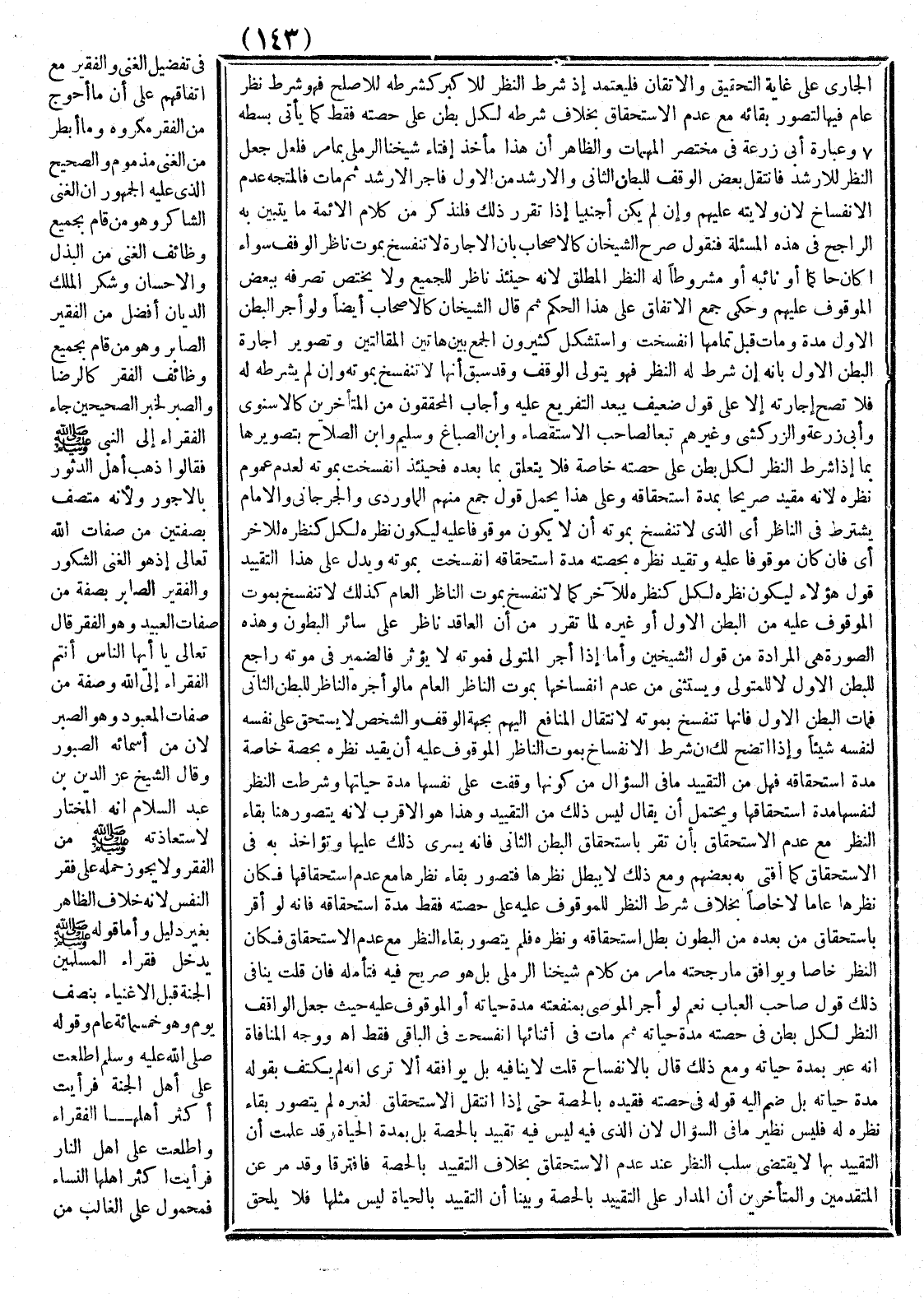 وَوَجْهُ الْمُنَافَاةِ أَنَّهُ عَبَّرَ بِمُدَّةِ حَيَاتِهِ وَمَعَ ذَلِكَ قَالَ بِالِانْفِسَاخِ قُلْت لَا يُنَافِيه بَلْ يُوَافِقهُ أَلَا تَرَى أَنَّهُ لَمْ يَكْتَفِ بِقَوْلِهِ مُدَّةَ حَيَاتِهِ بَلْ ضَمَّ إلَيْهِ قَوْلَهُ فِي حِصَّتِهِ فَقَيَّدَهُ بِالْحِصَّةِ حَتَّى إذَا انْتَقَلَ الِاسْتِحْقَاقُ لِغَيْرِهِ لَمْ يُتَصَوَّرْ بَقَاءُ نَظَرِهِ لَهُ فَلَيْسَ نَظِيرَ مَا فِي السُّؤَالِ؛ لِأَنَّ الَّذِي فِيهِ لَيْسَ فِيهِ تَقْيِيدٌ بِالصِّحَّةِ بَلْ بِمُدَّةِ الْحَيَاةِ وَقَدْ عَلِمْت أَنَّ التَّقْيِيدَ بِهَا لَا يَقْتَضِي سَلْبَ النَّظَرِ عِنْدَ عَدَمِ الِاسْتِحْقَاقِ بِخِلَافِ التَّقْيِيدِ بِالْحِصَّةِ فَافْتَرَقَا رَقَا وَقَدْ مَرَّ عَنْ الْمُتَقَدِّمِينَ وَالْمُتَأَخِّرِينَ أَنَّ الْمَدَارَ عَلَى التَّقْيِيدِ بِالْحِصَّةِ وَبَيَّنَّا أَنَّ التَّقْيِيدَ بِالْحَيَاةِ لَيْسَ مِثْلَهَا فَلَا يُلْحَقُ
