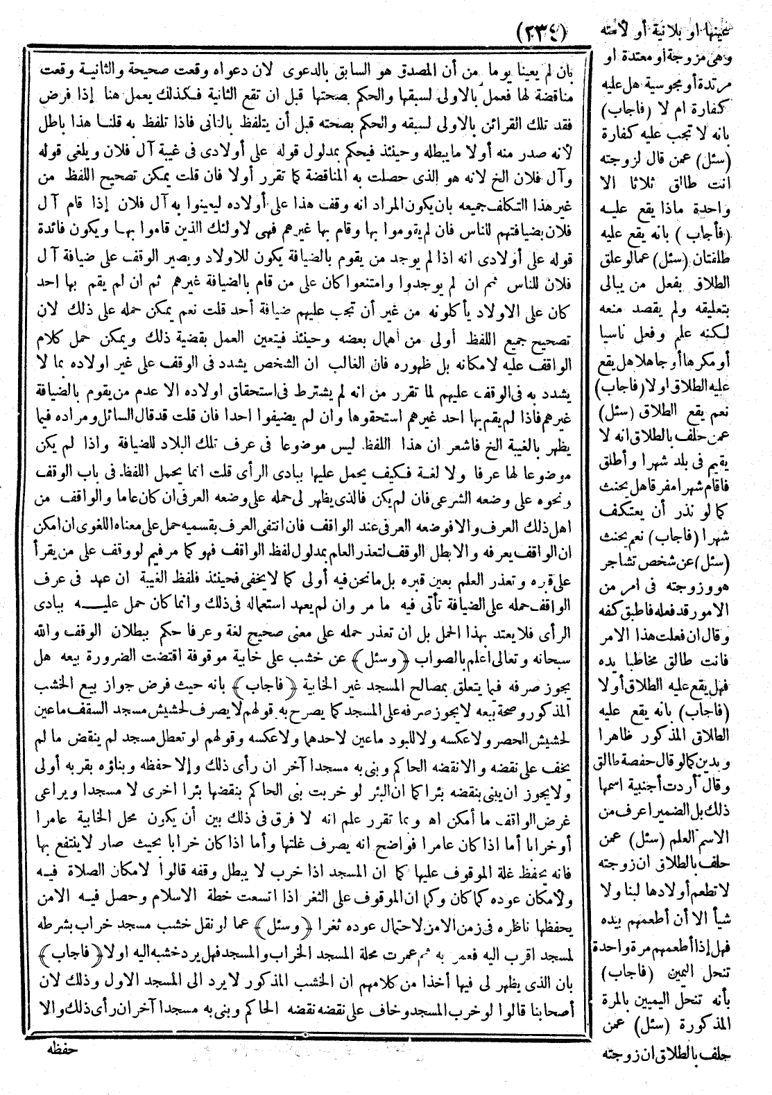 (فَأَجَابَ) بِأَنَّ الَّذِي يَظْهَرُ لِي فِيهَا أَخْذًا مِنْ كَلَامِهِمْ أَنَّ الْخَشَبَ الْمَذْكُورَ لَا يُرَدُّ إلَى الْمَسْجِدِ الْأَوَّلِ، وَذَلِكَ؛ لِأَنَّ أَصْحَابَنَا قَالُوا: لَوْ خَرِبَ الْمَسْجِدُ وَخَافَ عَلَى نَقْضِهِ نَقَضَهُ الْحَاكِمُ وَبَنَى بِهِ مَسْجِدًا آخَرَ إنْ رَأَى ذَلِكَ، وَإِلَّا