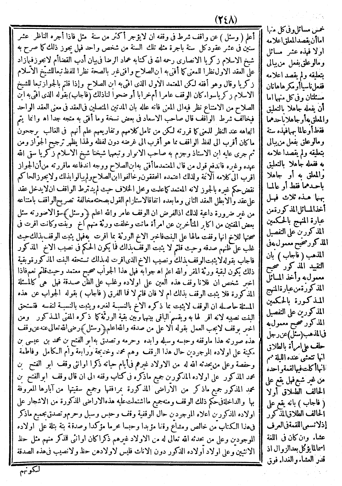 وَقَالَ: وَهُوَ أَفْقَهُ لَكِنَّ الْمُعْتَمَدَ الْأَوَّلُ الَّذِي أَفْتَى بِهِ ابْنُ الصَّلَاحِ، وَإِذَا قُلْتُمْ بِالْجَوَازِ تَبَعًا لِشَيْخِ الْإِسْلَامِ زَكَرِيَّا، سَوَاءٌ كَانَ الْوَقْفُ عَامِرًا أَمْ خَرَابًا أَوْضِحُوا لَنَا ذَلِكَ؟