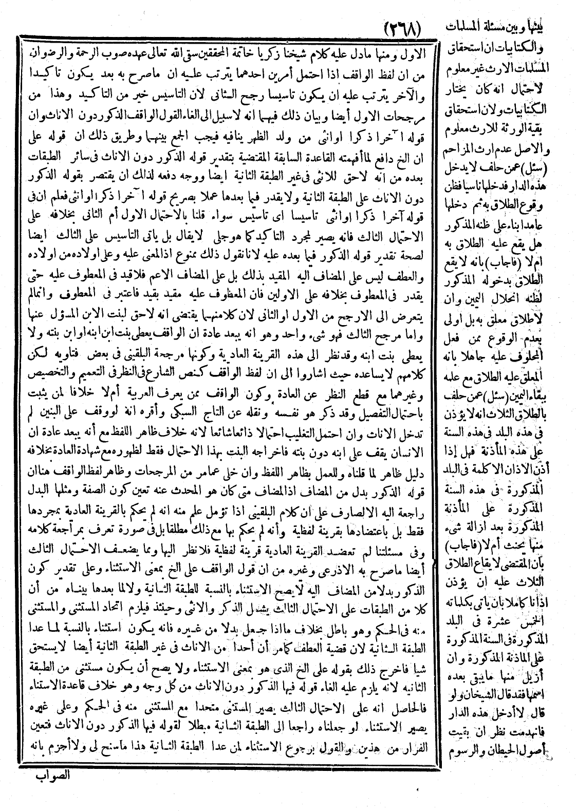 الْأَوَّلِ وَمِنْهَا مَا دَلَّ عَلَيْهِ كَلَامُ شَيْخِنَا زَكَرِيَّا خَاتِمَةِ الْمُحَقِّقِينَ سَقَى اللَّهُ تَعَالَى عَهْدَهُ صَوْبَ الرَّحْمَةِ وَالرِّضْوَانِ مِنْ أَنَّ لَفْظَ الْوَاقِفِ إذَا احْتَمَلَ أَمْرَيْنِ: