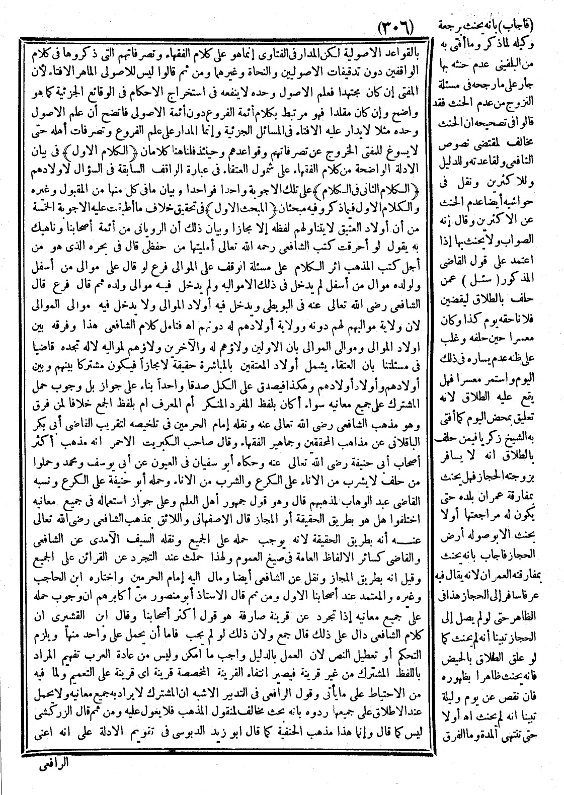بِالْقَوَاعِدِ الْأُصُولِيَّةِ لَكِنَّ الْمَدَارَ فِي الْفَتَاوَى إنَّمَا هُوَ عَلَى كَلَامِ الْفُقَهَاءِ وَتَصَرُّفَاتِهِمْ الَّتِي ذَكَرُوهَا فِي كَلَامِ الْوَاقِفِينَ دُونَ تَدْقِيقَاتِ الْأُصُولِيِّينَ وَالنُّحَاةِ وَغَيْرِهِمَا وَمِنْ ثَمَّ قَالُوا: لَيْسَ لِلْأُصُولِيِّ الْمَاهِرِ الْإِفْتَاءُ؛ لِأَنَّ الْمُفْتِي إنْ كَانَ مُجْتَهِدًا فَعِلْمُ الْأُصُولِ وَحْدَهُ لَا يَنْفَعُهُ فِي اسْتِخْرَاجِ الْأَحْكَامِ فِي الْوَقَائِعِ الْجُزْئِيَّةِ كَمَا هُوَ وَاضِحٌ، وَإِنْ كَانَ مُقَلِّدًا فَهُوَ مُرْتَبِطُ بِكَلَامِ أَئِمَّةِ الْفُرُوعِ دُونَ أَئِمَّةِ الْأُصُولِ فَاتَّضَحَ أَنَّ عِلْمَ الْأُصُولِ وَحْدَهُ مَثَلًا لَا يُدَارُ عَلَيْهِ الْإِفْتَاءُ فِي الْمَسَائِلِ الْجُزْئِيَّةِ، وَإِنَّمَا الْمَدَارُ عَلَى عِلْمِ الْفُرُوعِ وَتَصَرُّفَاتِ أَهْلِهِ حَتَّى لَا يَسُوغُ لِلْمُفْتِي الْخُرُوجُ عَنْ تَصَرُّفَاتِهِمْ وَقَوَاعِدِهِمْ وَحِينَئِذٍ قُلْنَا: هُنَا كَلَامَانِ (الْكَلَامُ الْأَوَّل) فِي بَيَانِ الْأَدِلَّةِ الْوَاضِحَةِ مِنْ كَلَامِ الْفُقَهَاءِ عَلَى شُمُولِ الْعُتَقَاءِ فِي عِبَارَةِ الْوَاقِفِ السَّابِقَةِ فِي السُّؤَالِ لِأَوْلَادِهِمْ، (الْكَلَامُ الثَّانِي فِي الْكَلَامِ) عَلَى تِلْكَ الْأَجْوِبَةِ وَاحِدًا فَوَاحِدًا وَبَيَانِ مَا فِي كُلٍّ مِنْهُمَا مِنْ الْمَقْبُولِ وَغَيْرِهِ.