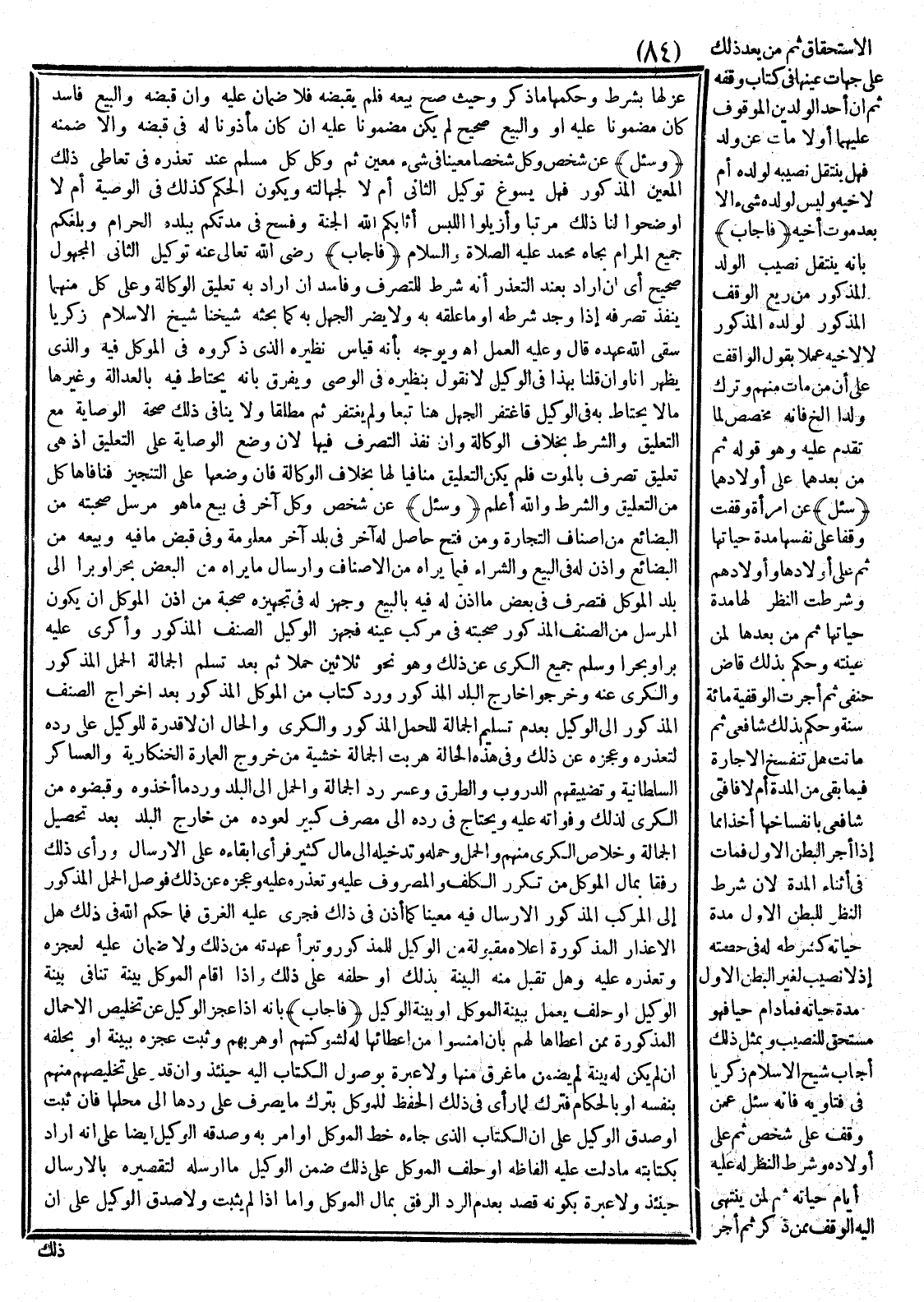 (وَسُئِلَ) عَنْ شَخْصٍ وَكَّلَ شَخْصًا مُعَيَّنًا فِي شَيْءٍ مُعَيَّنٍ ثُمَّ وَكَّلَ كُلَّ مُسْلِمٍ عِنْدَ تَعَذُّرِهِ فِي تَعَاطِي ذَلِكَ الْمُعَيَّنِ الْمَذْكُورِ فَهَلْ يَسُوغُ تَوْكِيلُ الثَّانِي أَمْ لَا لِجَهَالَتِهِ وَيَكُونُ الْحُكْمُ كَذَلِكَ فِي الْوَصِيَّةِ أَمْ لَا أَوْضِحُوا لَنَا ذَلِكَ مُرَتَّبًا وَأَزِيلُوا اللَّبْسَ أَثَابَكُمْ اللَّهُ الْجَنَّةَ وَفَسَّحَ فِي مُدَّتِكُمْ بِبَلَدِهِ الْحَرَامِ وَبَلَّغَكُمْ جَمِيعَ الْمَرَامِ بِجَاهِ مُحَمَّدٍ - عَلَيْهِ الصَّلَاةُ وَالسَّلَامُ -؟