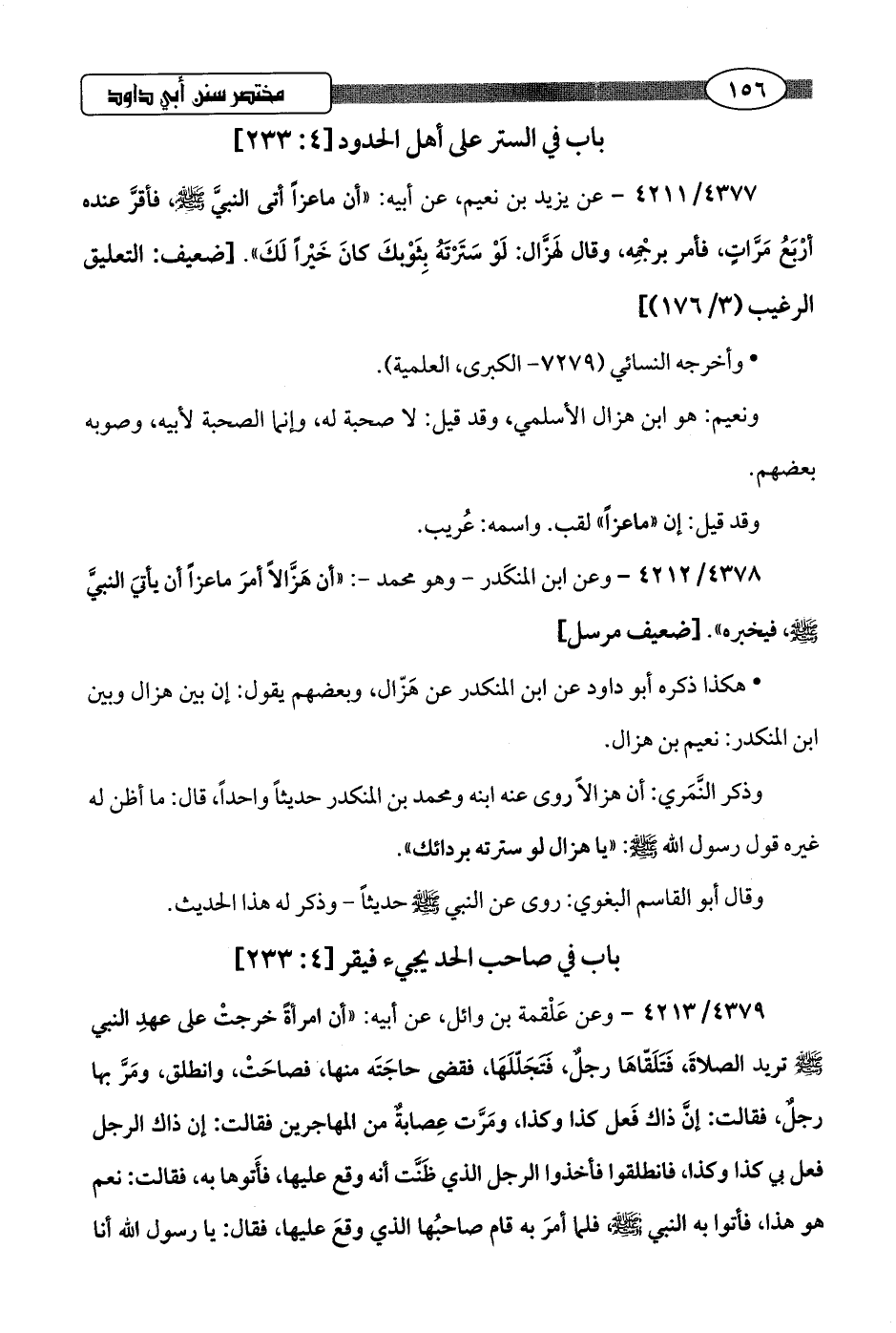 4378/ 4212 - وعن ابن المنكَدر -وهو محمد-: "أن هَزَّالًا أمرَ ماعزًا أن يأتيَ النبيَّ -صلى اللَّه عليه وسلم-، فيخبره".hضعيف مرسل]