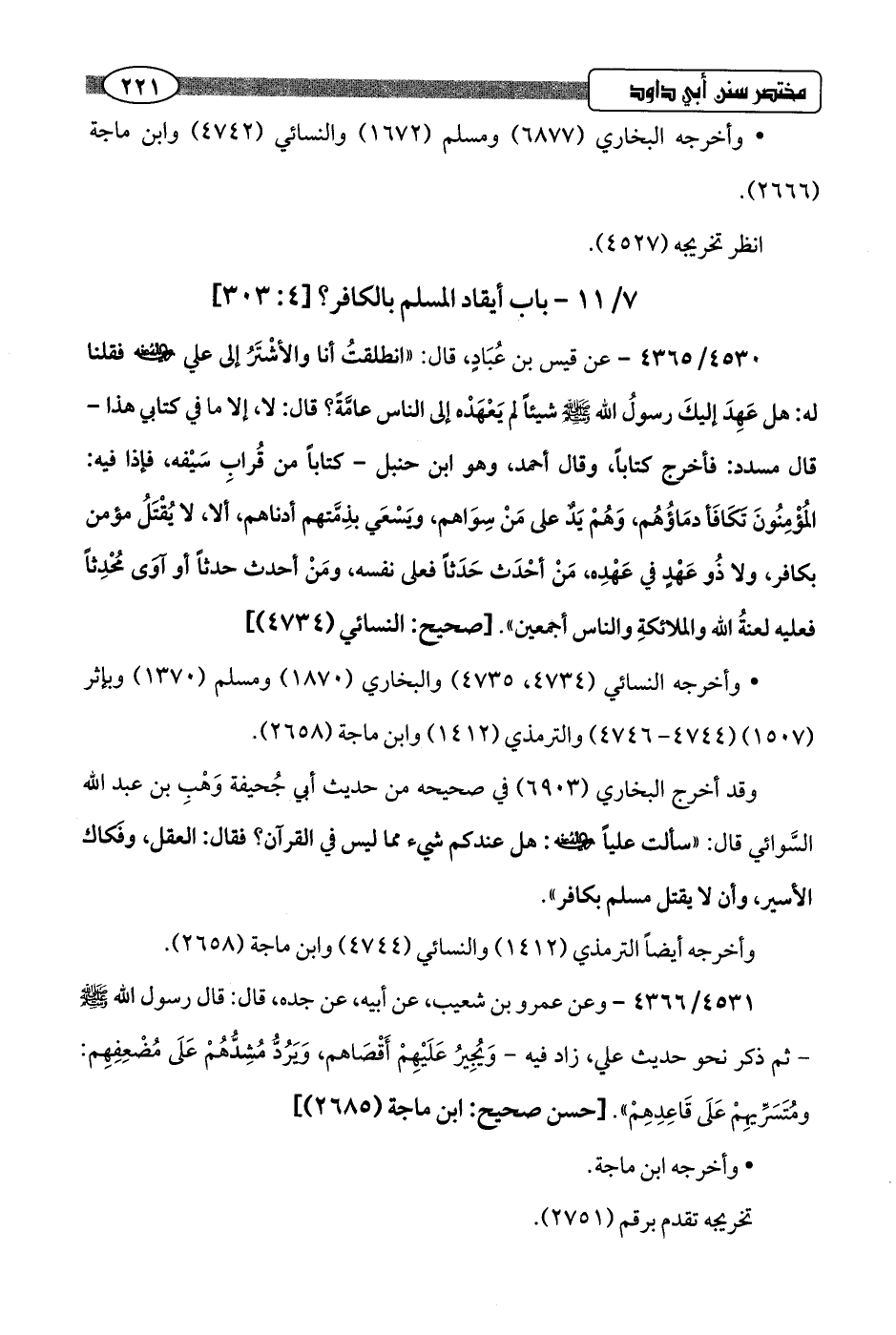 7/ 11 - باب أيقاد المسلم بالكافر؟ [4: 303]