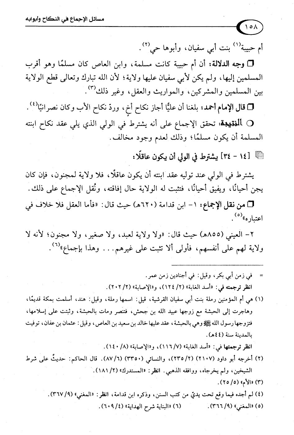 • وجه الدلالة: أن أم حبيبة كانت مسلمة، وابن العاص كان مسلمًا وهو أقرب المسلمين إليها، ولم يكن لأبي سفيان عليها ولاية؛ لأن اللَّه تبارك وتعالى قطع الولاية بين المسلمين والمشركين، والمواريث والعقل، وغير ذلك (¬3).
