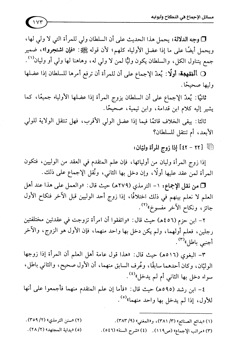 ثانيًا: يُعدّ الإجماع على أن السلطان يزوج المرأة إذا عضلها الأولياء جميعًا، كما يشير إليه كلام ابن قدامة، وابن تيمية، صحيحًا.