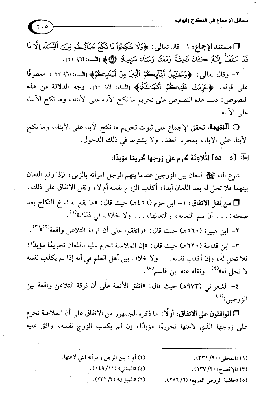 1 - ابن حزم (456 هـ) حيث قال: "ما يقع به فسخ النكاح بعد صحته: . . . أن يتم التعانه، والتعانها، . . . ولا خلاف في ذلك" (¬1).