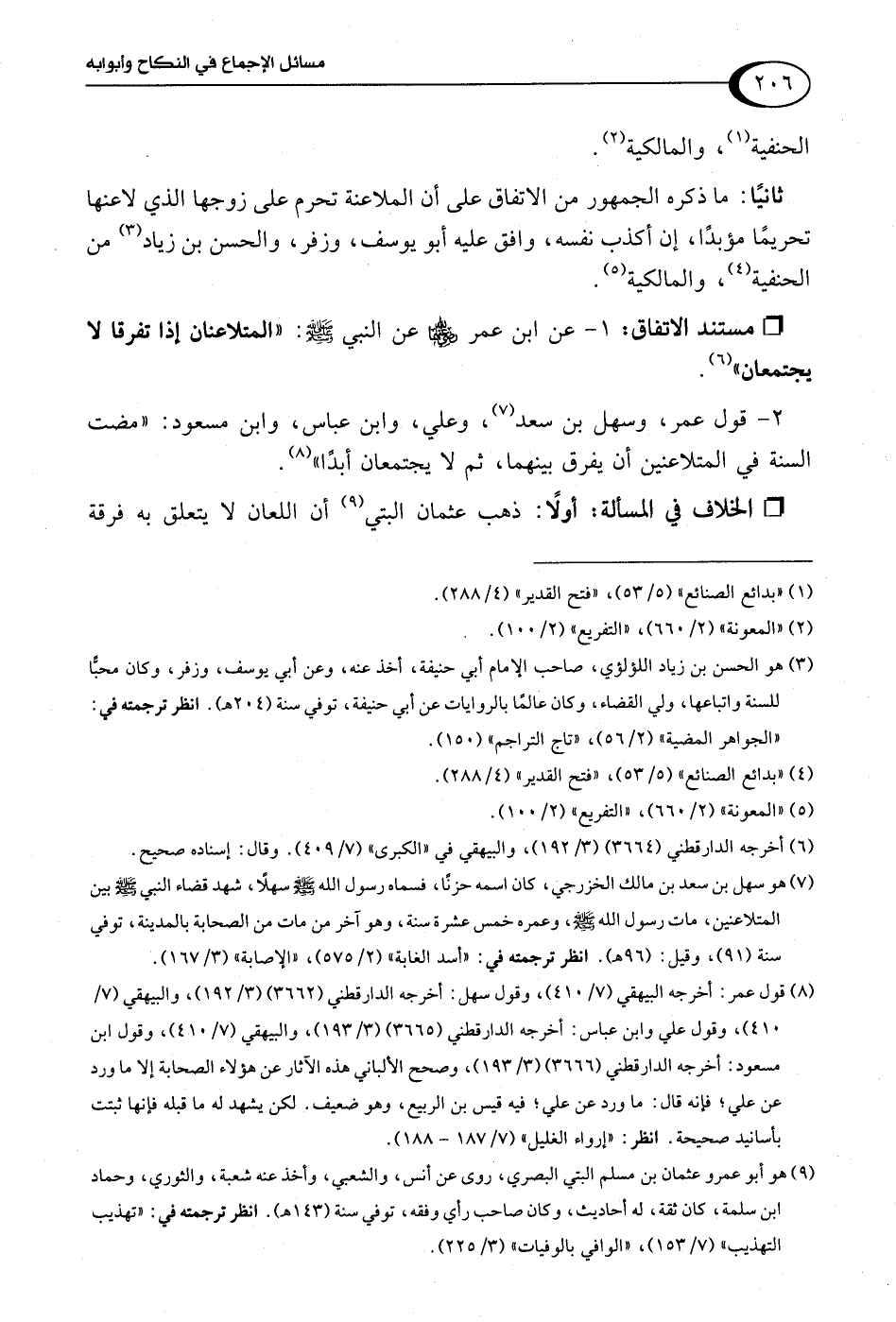 1 - عن ابن عمر -رضي اللَّه عنهما- عن النبي -صلى اللَّه عليه وسلم-: "المتلاعنان إذا تفرقا لا يجتمعان" (¬6).