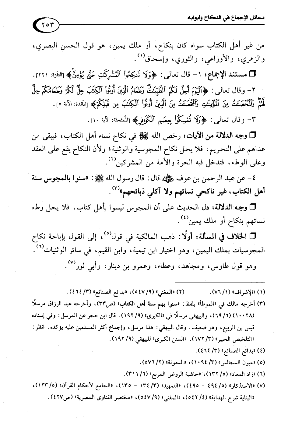 (¬7) "الاستذكار" (5/ 494 - 495)، "التمهيد" (3/ 134 - 135)، "الجامع لأحكام القرآن" (5/ 123)، "البناية شرح الهداية" (4/ 542)، "المغني" (9/ 547)، "مختصر الفتاوى المصرية" (ص 427).