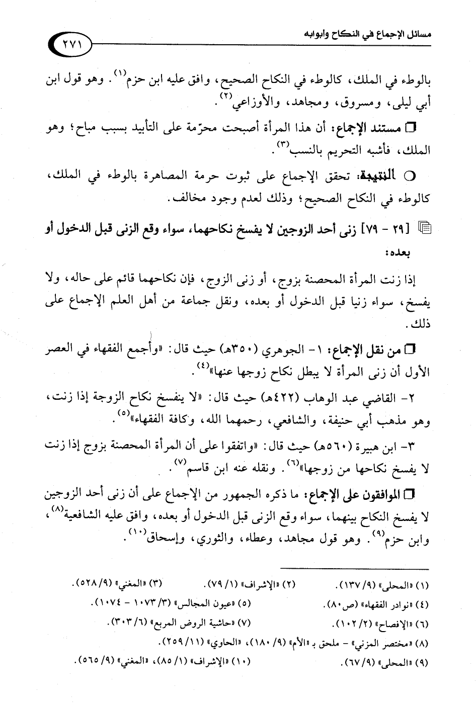 3 - ابن هبيرة (560 هـ) حيث قال: "واتفقوا على أن المرأة المحصنة بزوج إذا زنت لا يفسخ نكاحها من زوجها" (¬6). ونقله عنه ابن قاسم (¬7).