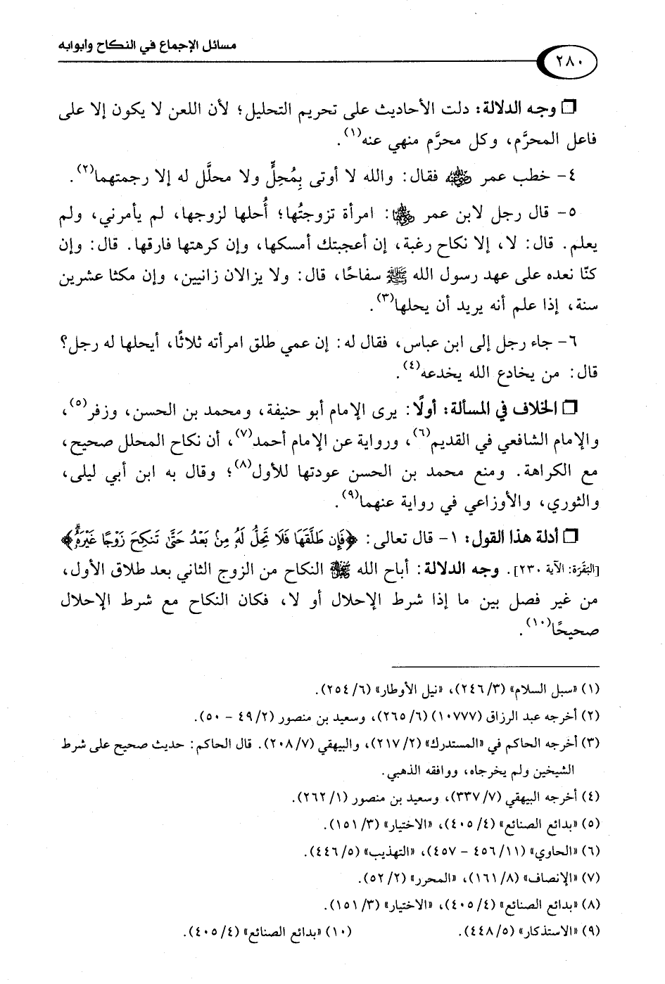 • الخلاف في المسألة: أولًا: يرى الإمام أبو حنيفة، ومحمد بن الحسن، وزفر (¬5)، والإمام الشافعي في القديم (¬6)، ورواية عن الإمام أحمد (¬7)، أن نكاح المحلل صحيح، مع الكراهة. ومنع محمد بن الحسن عودتها للأول (¬8)؛ وقال به ابن أبي ليلى، والثوري، والأوزاعي في رواية عنهما (¬9).