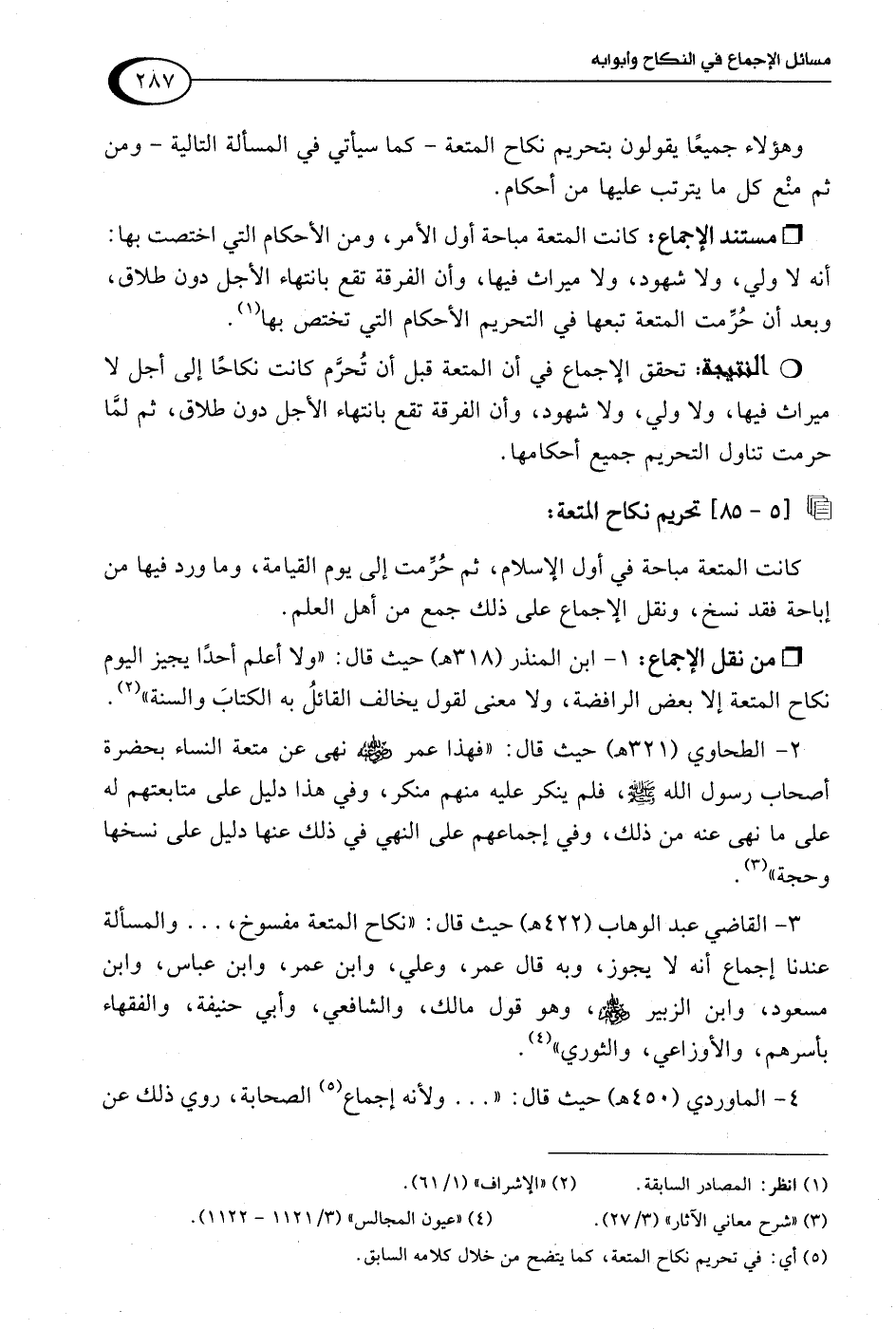 1 - ابن المنذر (318 هـ) حيث قال: "ولا أعلم أحدًا يجيز اليوم نكاح المتعة إلا بعض الرافضة، ولا معنى لقول يخالف القائلُ به الكتابَ والسنة" (¬2).