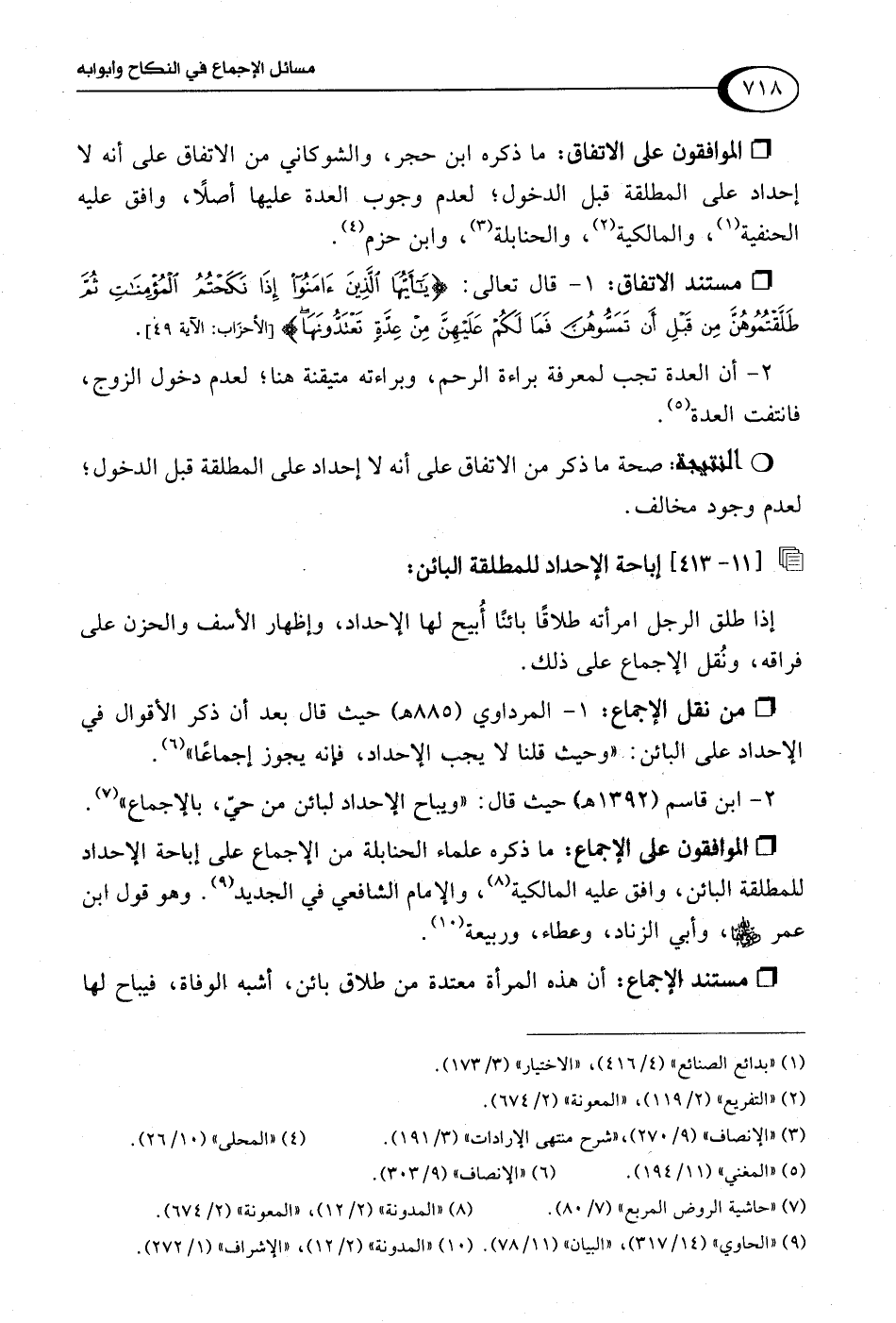 1 - المرداوي (885 هـ) حيث قال بعد أن ذكر الأقوال في الإحداد على البائن: "وحيث قلنا لا يجب الإحداد، فإنه يجوز إجماعًا" (¬6).