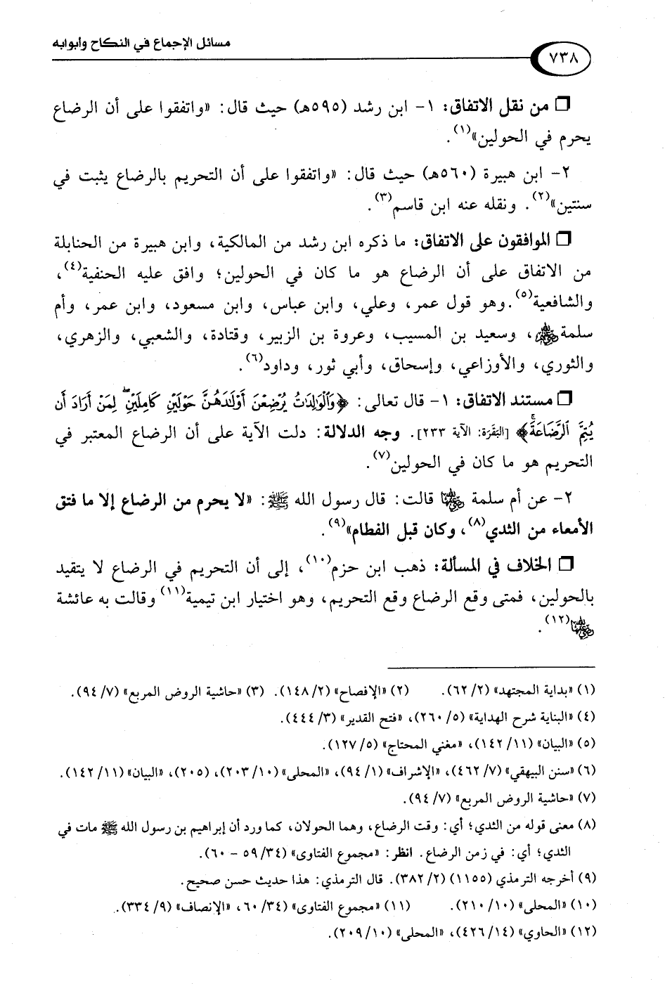 1 - ابن رشد (595 هـ) حيث قال: "واتفقوا على أن الرضاع يحرم في الحولين" (¬1).